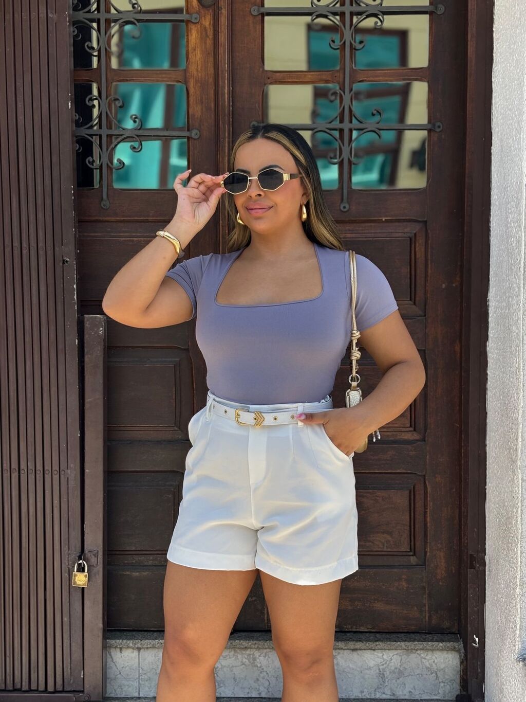 ● Body super simples e versatil. Leva o decote quadrado e mangas clássicas, aproveite essa característica para abusar de colares no estilo chocker.