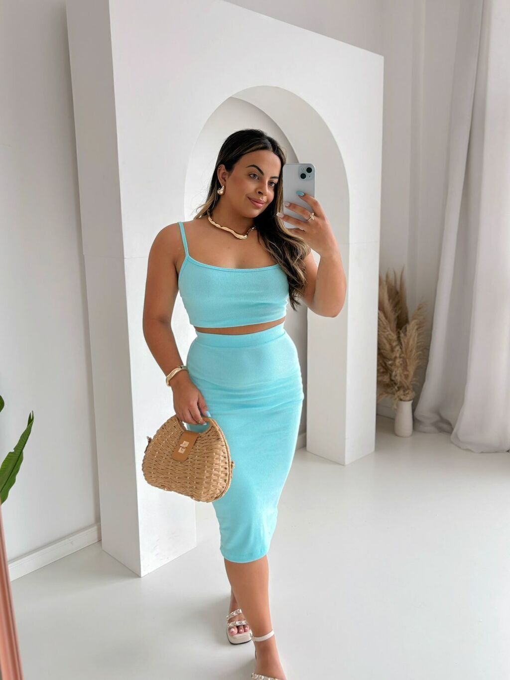 Conjunto despojado e estiloso, alem de ser uma peça super moderna, na tendencia midi e que veste extremamente! Garanta agora o seu conjunto Valen e arrase na estação mais quente do ano.